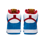 The Nike SB Dunk High Doraemon is a playful and nostalgic sneaker inspired by the popular Japanese manga and anime character, Doraemon. It features a vibrant blue colorway with white and yellow accents, reminiscent of Doraemon’s iconic color scheme. The upper is constructed with a mix of suede and leather, providing a premium look and feel. The shoe is adorned with Doraemon branding on the tongue and Nike’s signature Swoosh logo on the sides. With its whimsical design and homage to a beloved character, this sneaker is a must-have for fans of Doraemon and sneaker enthusiasts alike.