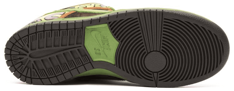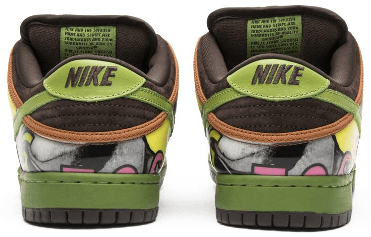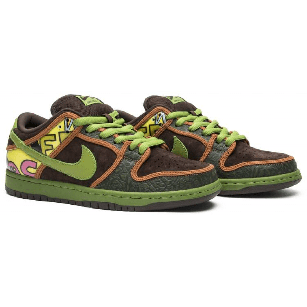 The Nike SB Dunk Low De La Soul is a visually striking shoe with a unique appearance. It features a vibrant and eye-catching color scheme, combining different shades of yellow, green, and red. The upper is adorned with intricate patterns and designs, adding a touch of artistic flair. The shoe also incorporates premium materials, providing durability and style. Overall, it is a standout sneaker that captures attention and showcases individuality.