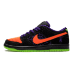 The Nike SB Dunk Low Night of Mischief Green is a captivating and spooky shoe that embraces the Halloween spirit. It features a predominantly green color scheme, with hints of black and orange. The upper is crafted with premium materials, including suede and leather, providing a luxurious feel. The shoe showcases a hauntingly beautiful design, with intricate details like ghostly patterns, spiderweb graphics, and glow-in-the-dark elements. The Nike branding is subtly incorporated, while additional accents like orange stitching and a pumpkin-inspired lace lock add to the festive theme. Overall, it is a striking and festive sneaker that celebrates the mischief and magic of Halloween.