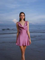 Bathed in the glow of sea and sky, this blush pink satin dress dances with soft femininity and freedom. Its relaxed silhouette and delicate sheen evoke a dreamy escape — where elegance meets ease.